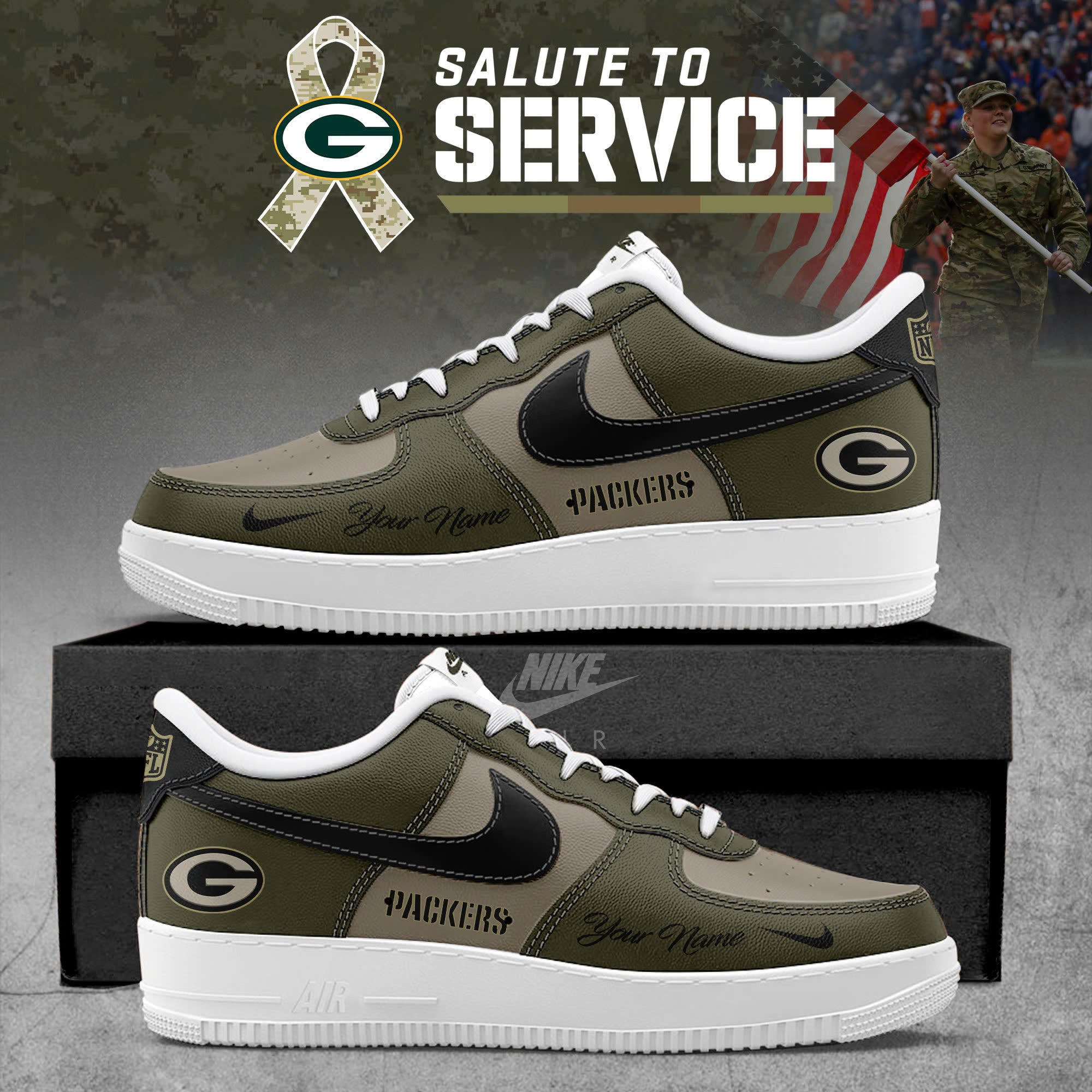 Custom Green Bay Packers Green Bay Packers NFL x Salute To Service 2025 AF1 Sneakers Air Force 1 SN