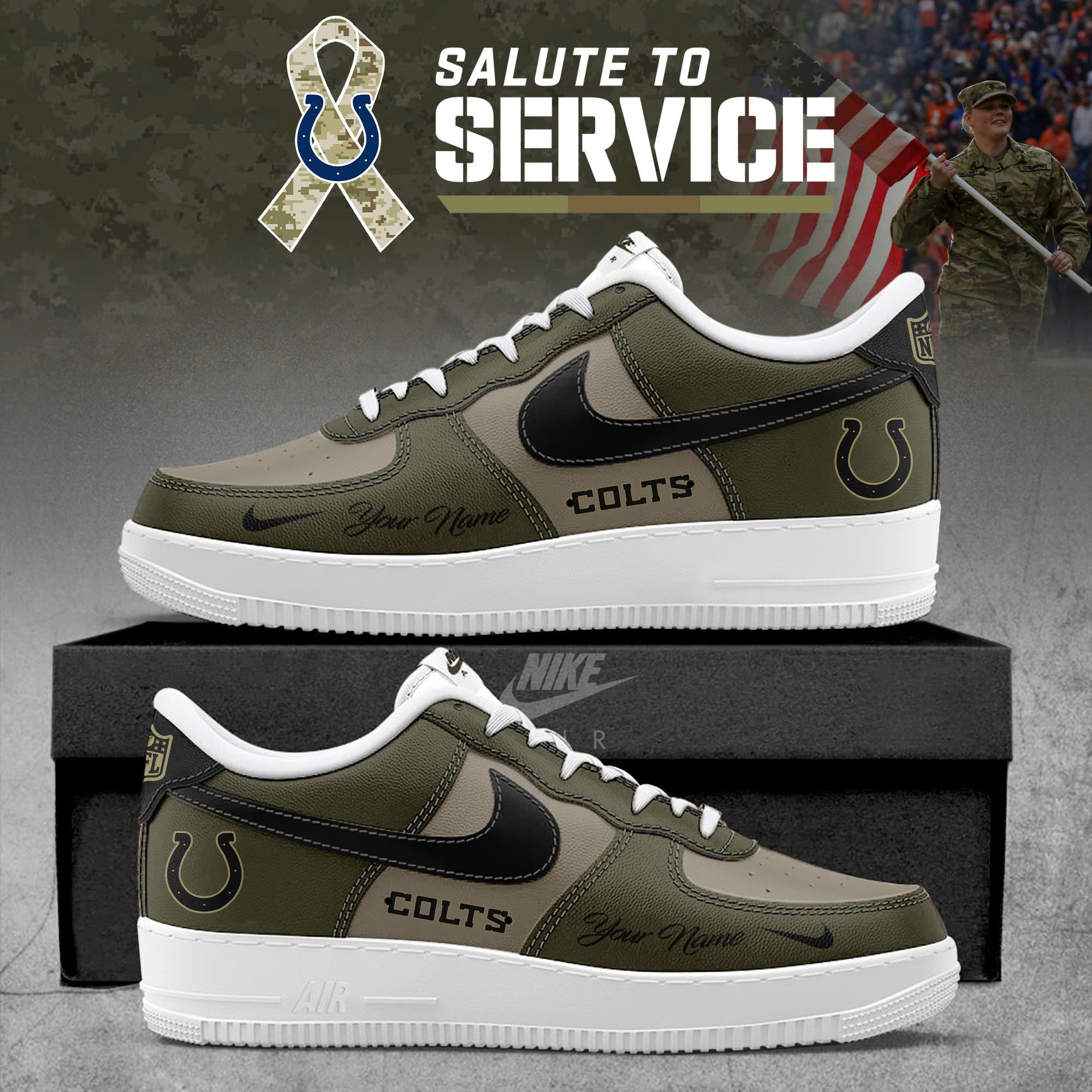 Custom Indianapolis Colts Indianapolis Colts NFL x Salute To Service 2025 AF1 Sneakers Air Force 1 SN