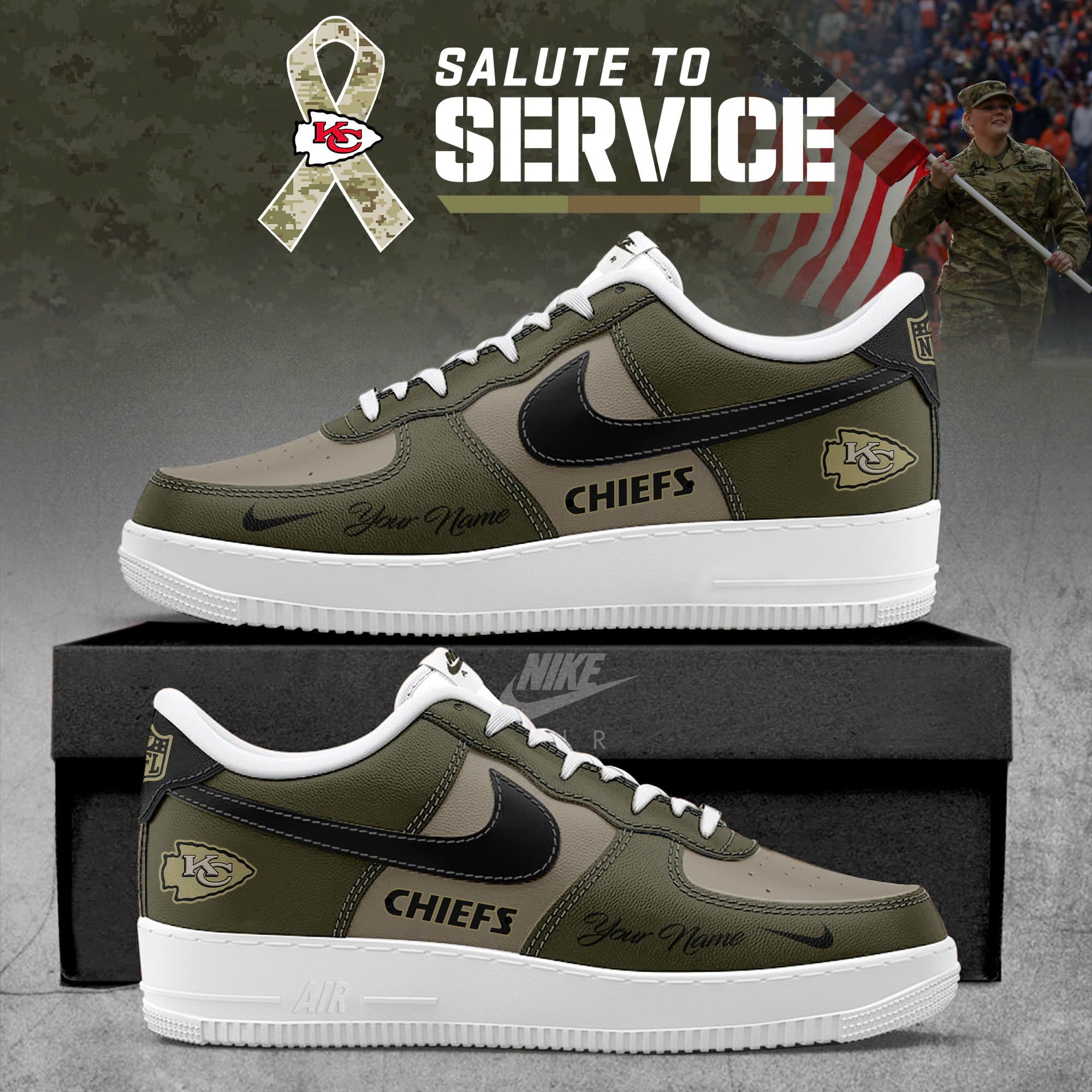 Custom Kansas City Chiefs Kansas City Chiefs NFL x Salute To Service 2025 AF1 Sneakers Air Force 1 SN