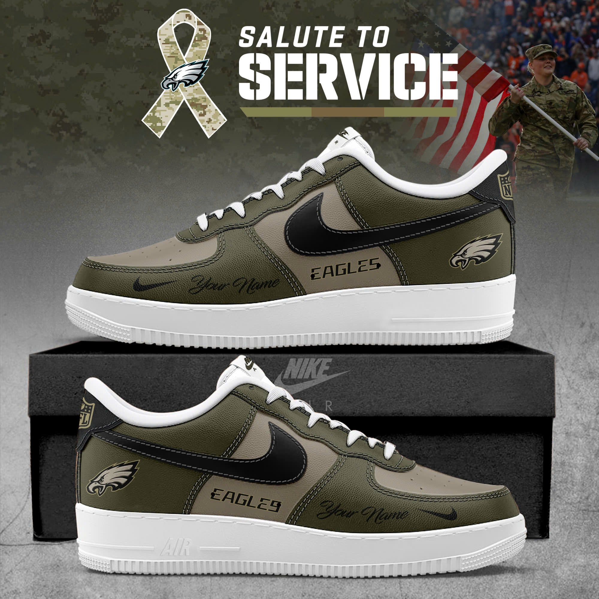 Custom Philadelphia Eagles Philadelphia Eagles NFL x Salute To Service 2025 AF1 Sneakers Air Force 1 SN