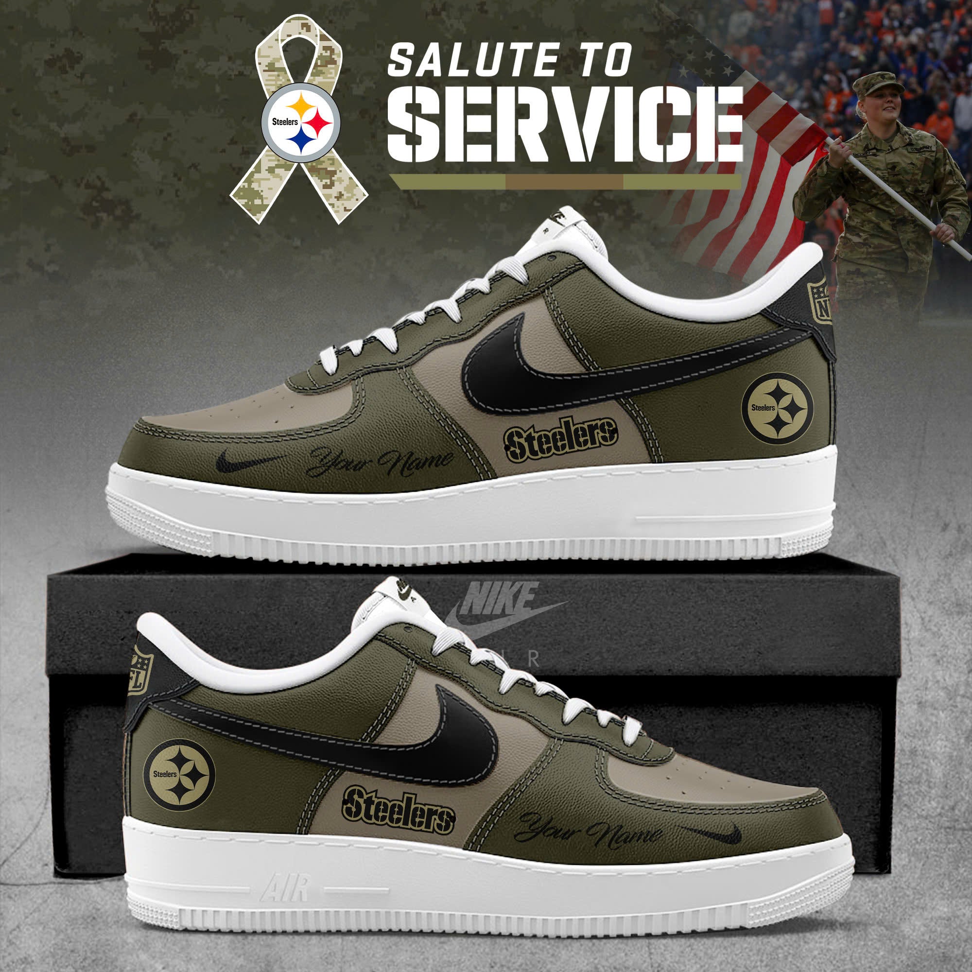 Custom Pittsburgh Steelers Pittsburgh Steelers NFL x Salute To Service 2025 AF1 Sneakers Air Force 1 SN