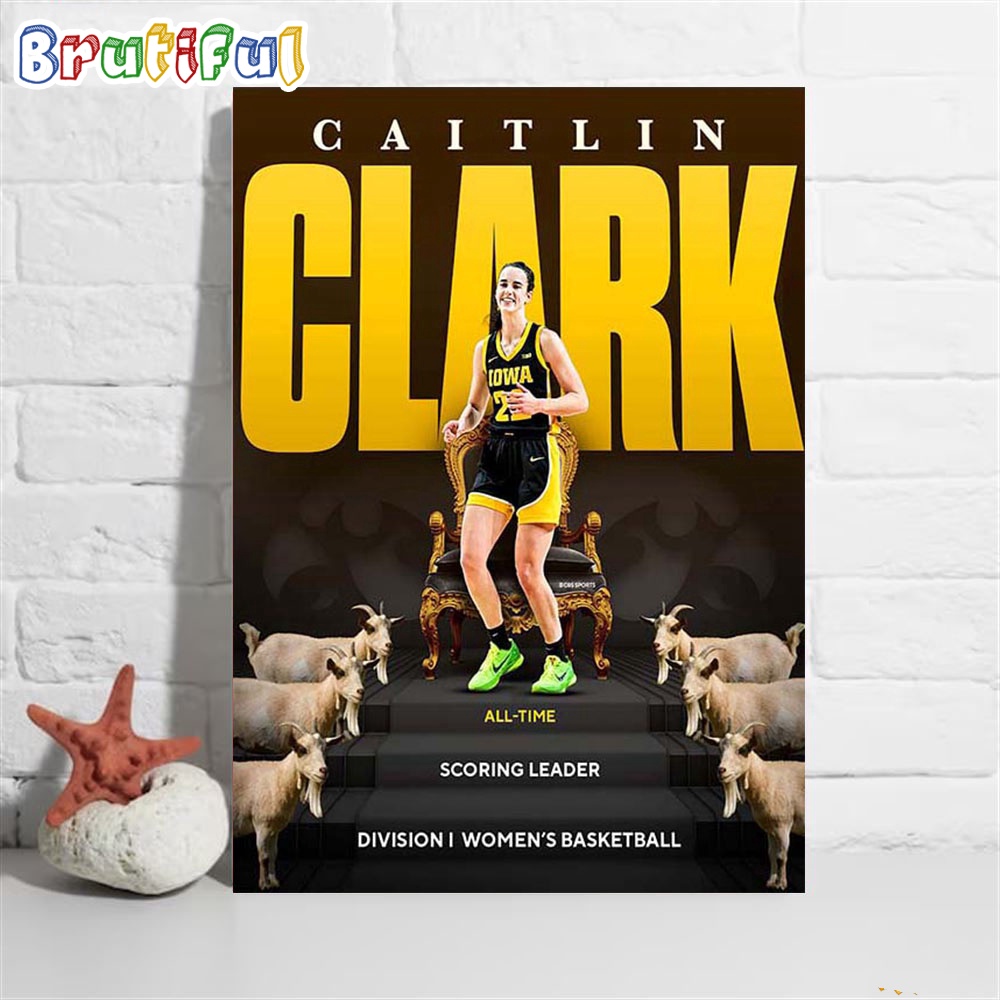 GOAT Caitlin Clark All-Time Scoring Leader Division I Womens Basketball Poster Canvas