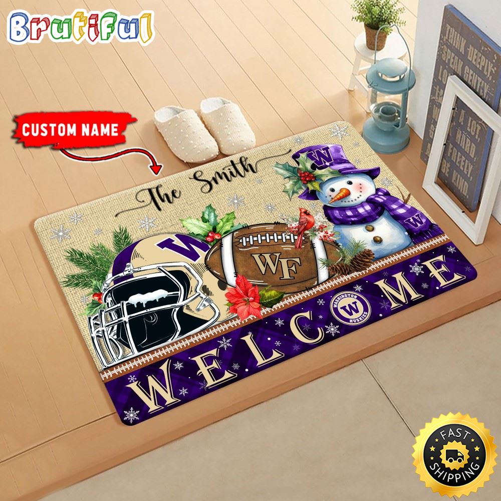NCAA Washington Huskies Doormat Welcome Christmas Custom Name Football Doormat