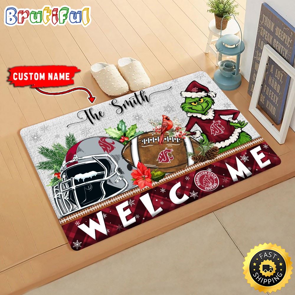NCAA Washington State Cougars Doormat Grinch Christmas Welcome Custom Name Football Doormat