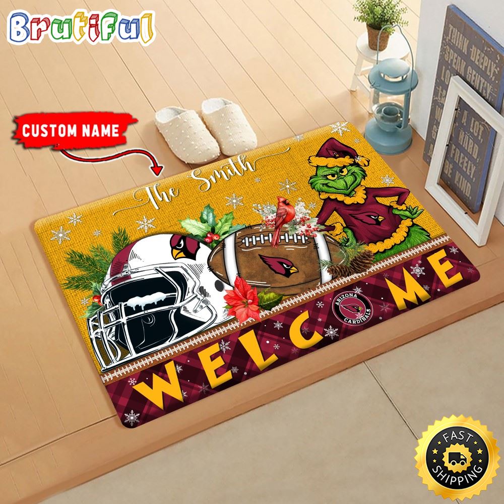 NFL Arizona Cardinals Doormat Grinch Christmas Welcome Custom Name Football Doormat