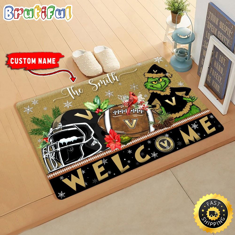 NCAA Vanderbilt Commodores Doormat Grinch Christmas Welcome Custom Name Football Doormat