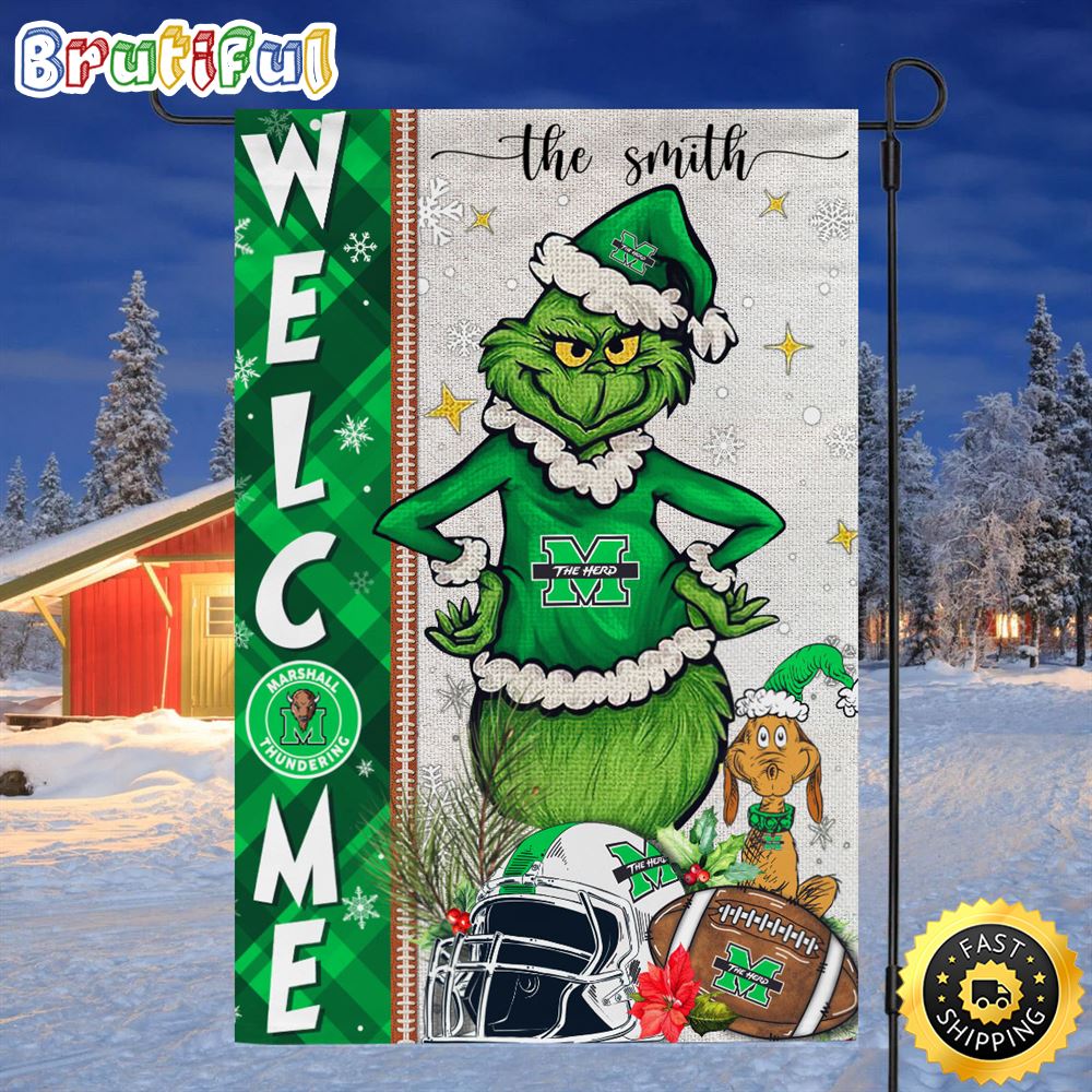 Customize NCAA Marshall Thundering Herd Garden Flag Grinch Football Christmas Welcome Garden Flag