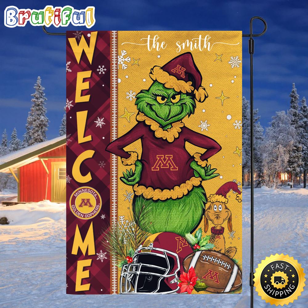 Customize NCAA Minnesota Golden Gophers Garden Flag Grinch Football Christmas Welcome Garden Flag