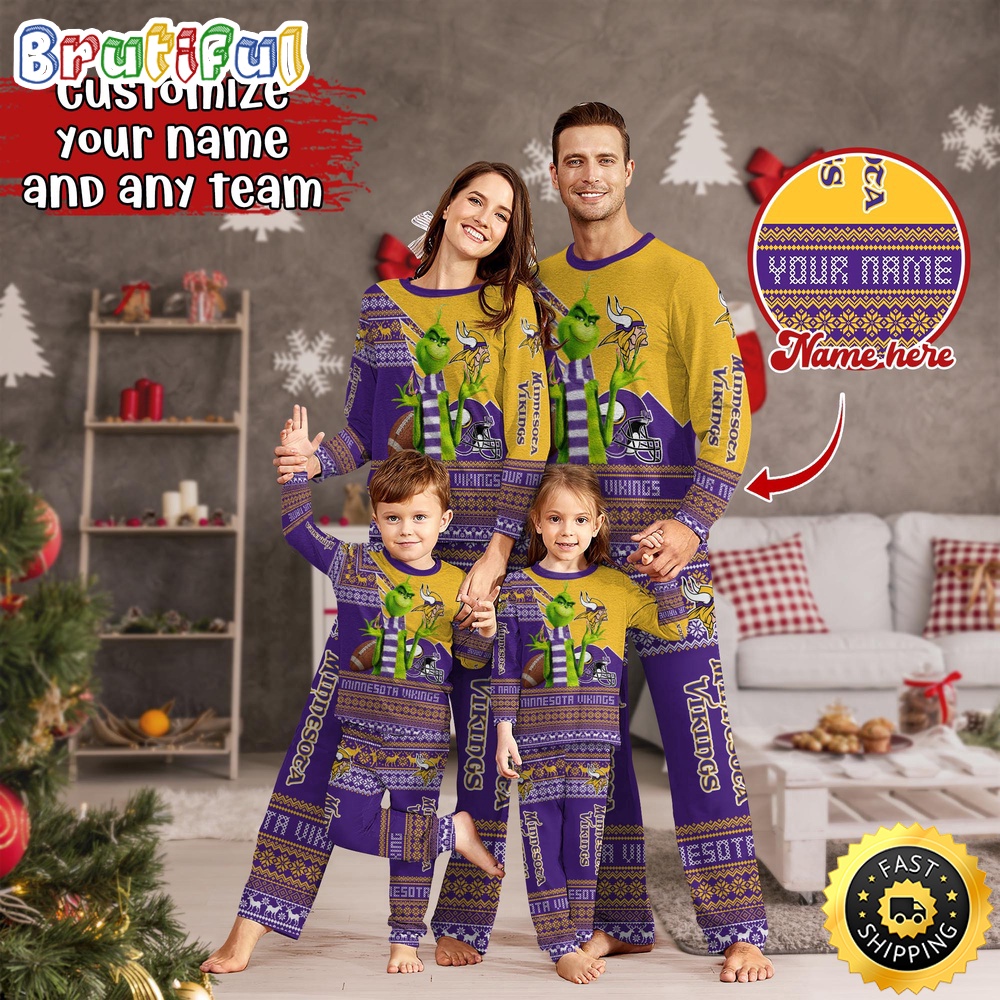 NFL Minnesota Vikings Custom Pajamas Christmas Sports For Family Custom Name Custom Pajamas