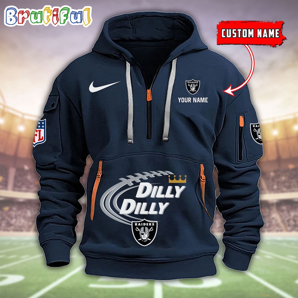 Custom NFL Las Vegas Raiders Dilly Dilly Football Heavy Hoodie, Football Quarter Zip Hoodie Shirt