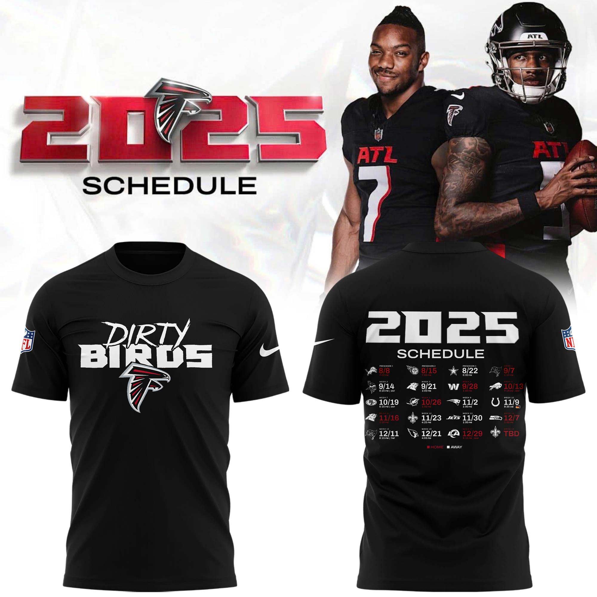 Atlanta Falcons 2025 Schedule Black Football Tee