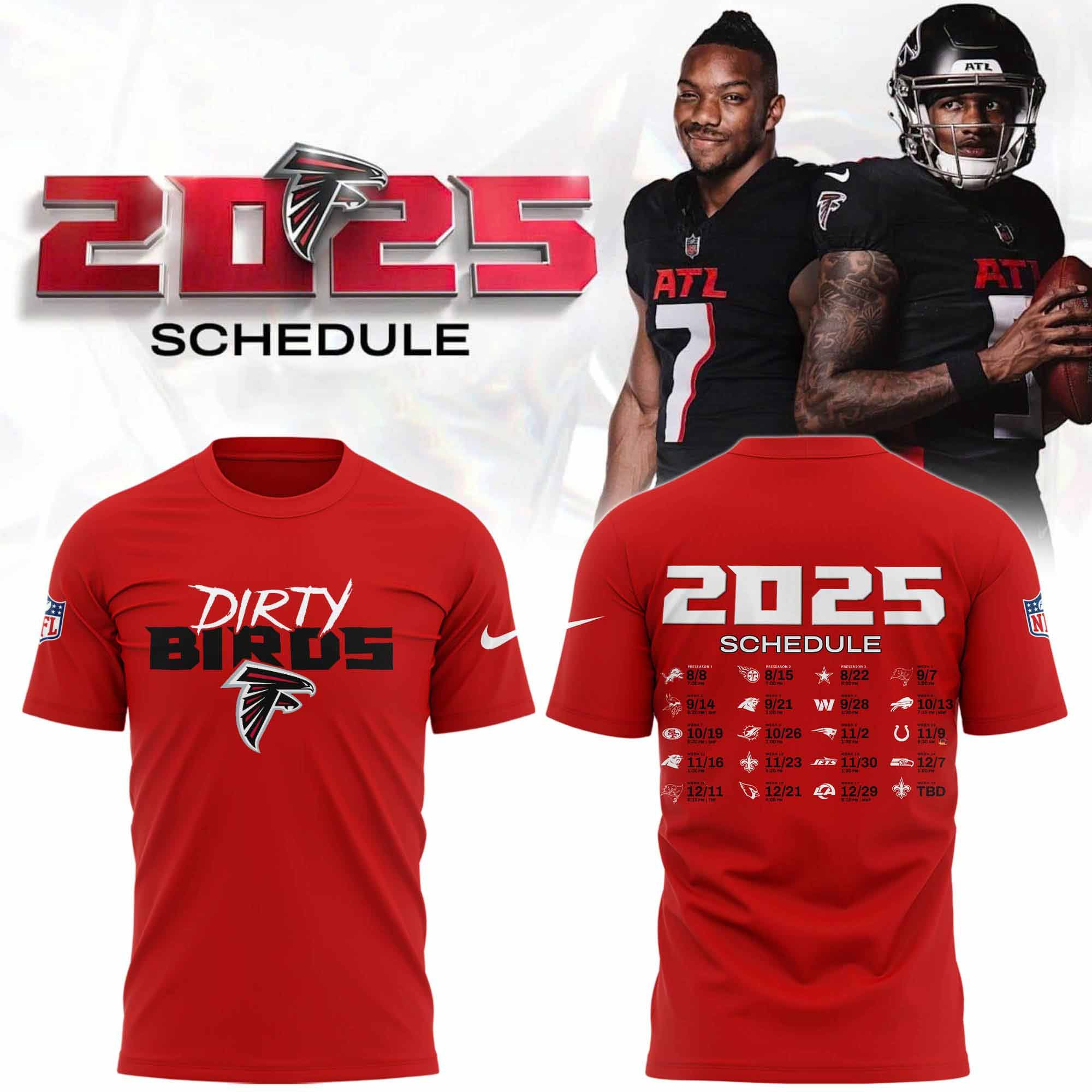 Atlanta Falcons 2025 Schedule Red Football Tee