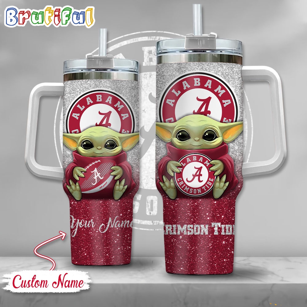 NCAA Alabama Crimson Tide Tumbler Baby Yoda Customzed Handle Cup