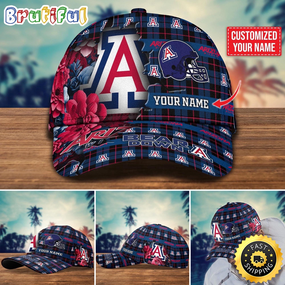 NCAA Arizona Wildcats Baseball Cap Flag Flower Custom Name Cap