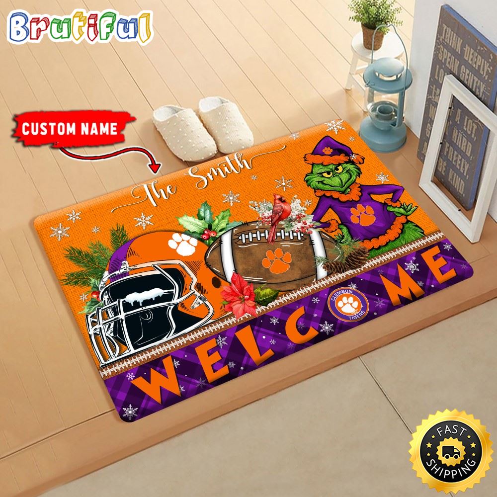 NCAA Clemson Tigers Doormat Grinch Christmas Welcome Custom Name Football Doormat
