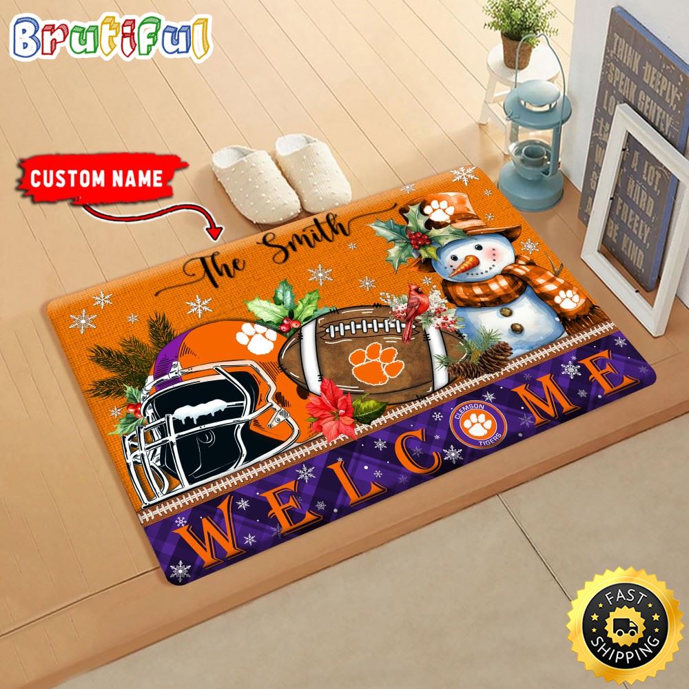 NCAA Clemson Tigers Doormat Welcome Christmas Custom Name Football Doormat