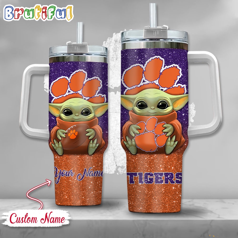 NCAA Clemson Tigers Tumbler Baby Yoda Customzed Handle Cup