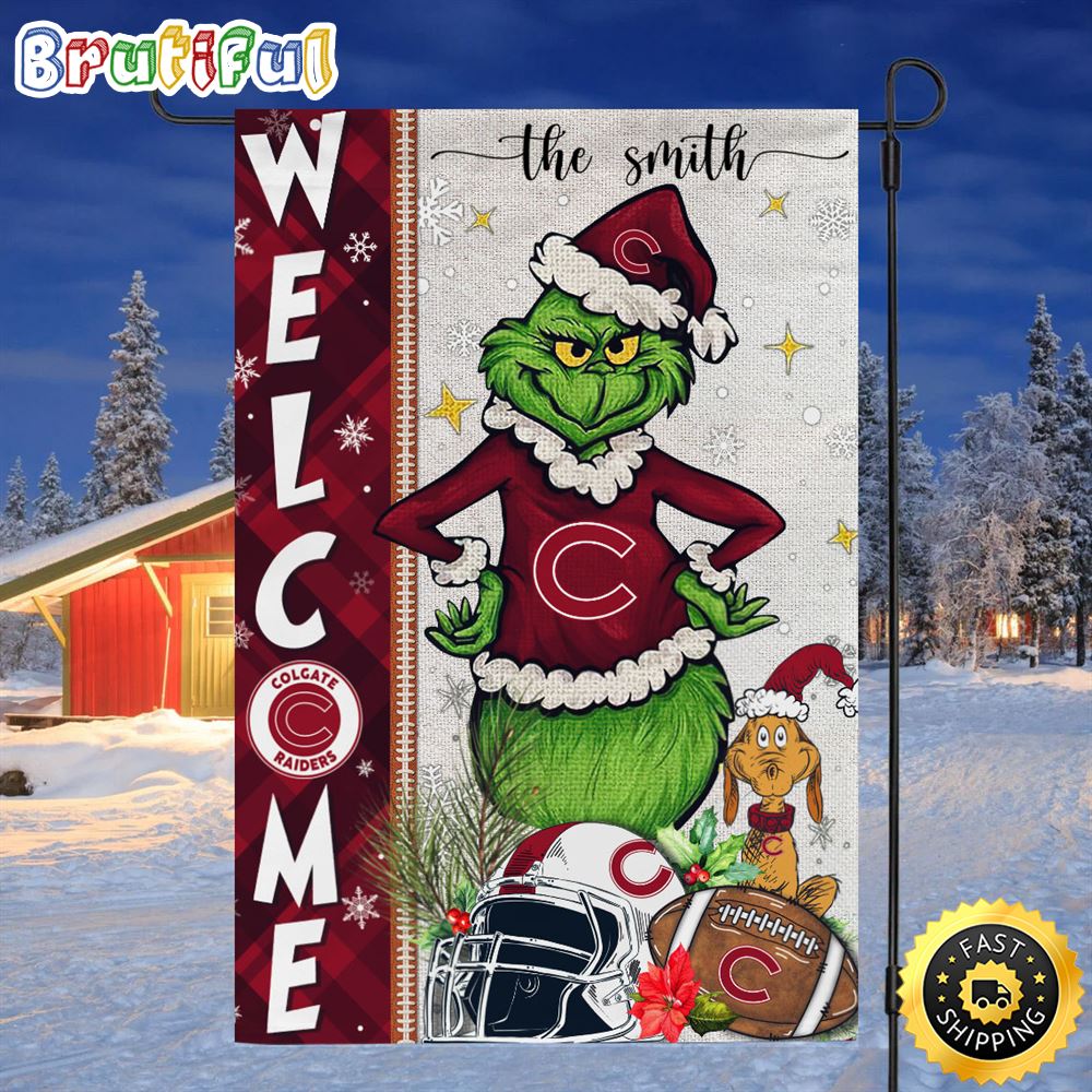 Customize NCAA Colgate Raiders Garden Flag Grinch Football Christmas Welcome Garden Flag