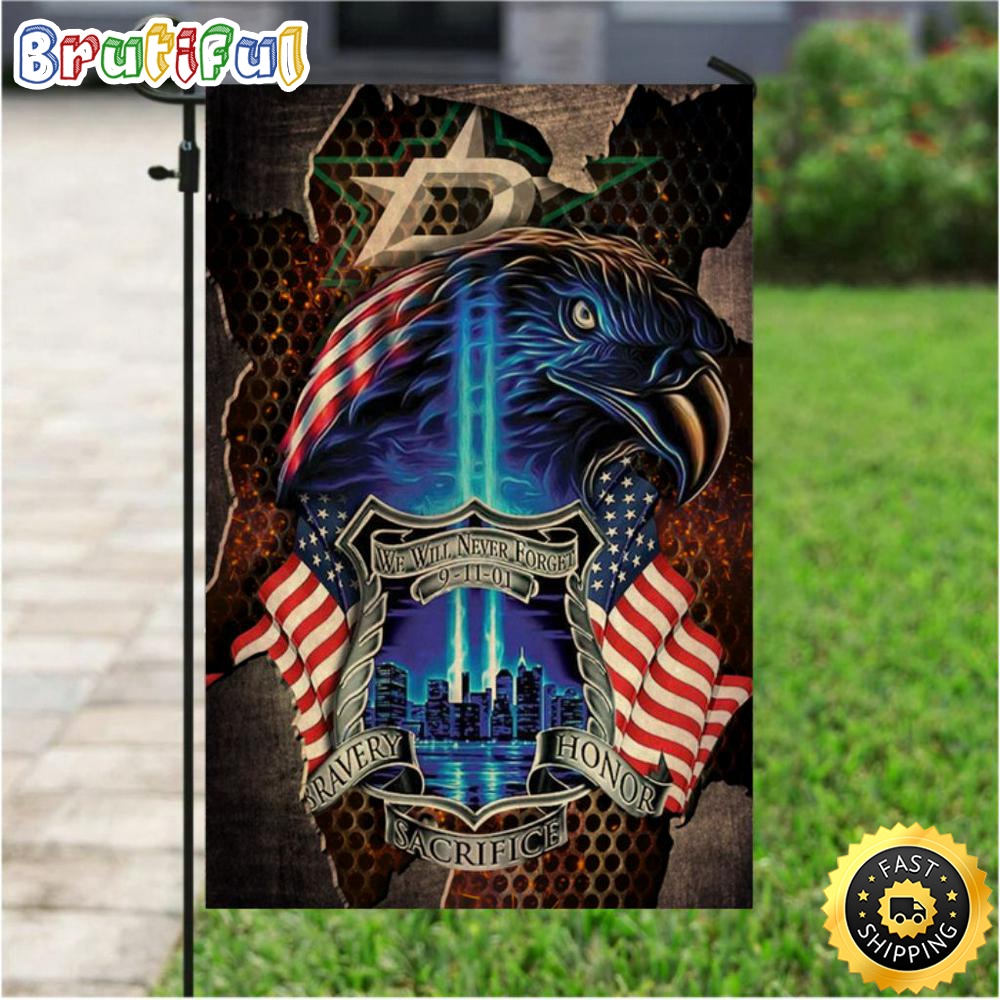 NHL Garden Flags Dallas Stars Specialized Flag For Honor Patriot Day We Will Never Forget