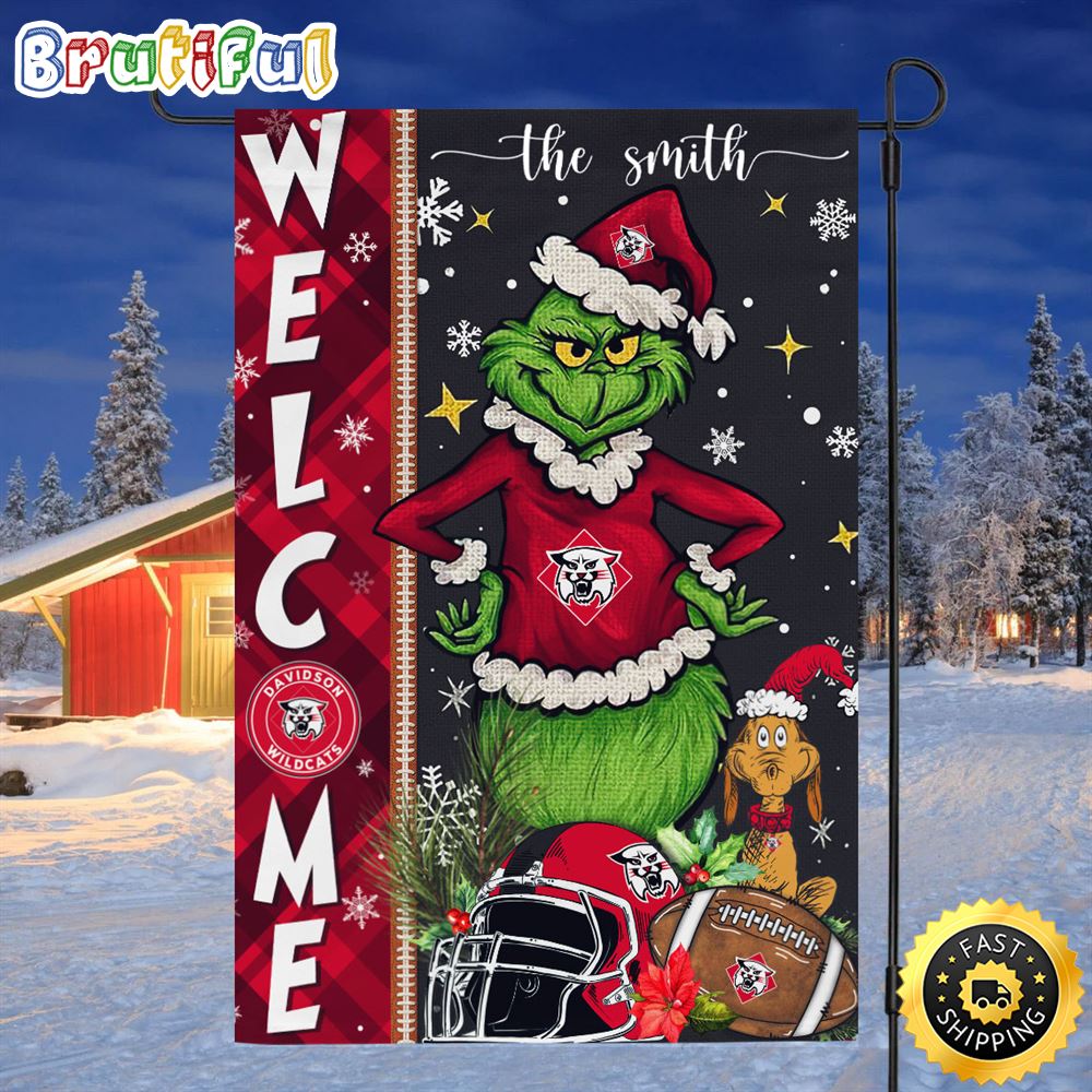 Customize NCAA Davidson Wildcats Garden Flag Grinch Football Christmas Welcome Garden Flag