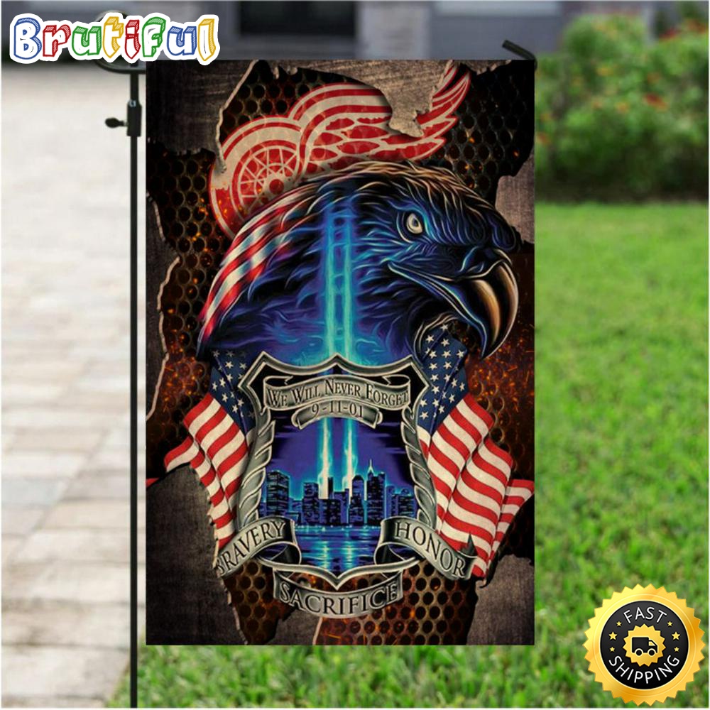 NHL Garden Flags Detroit Red Wings Specialized Flag For Honor Patriot Day We Will Never Forget