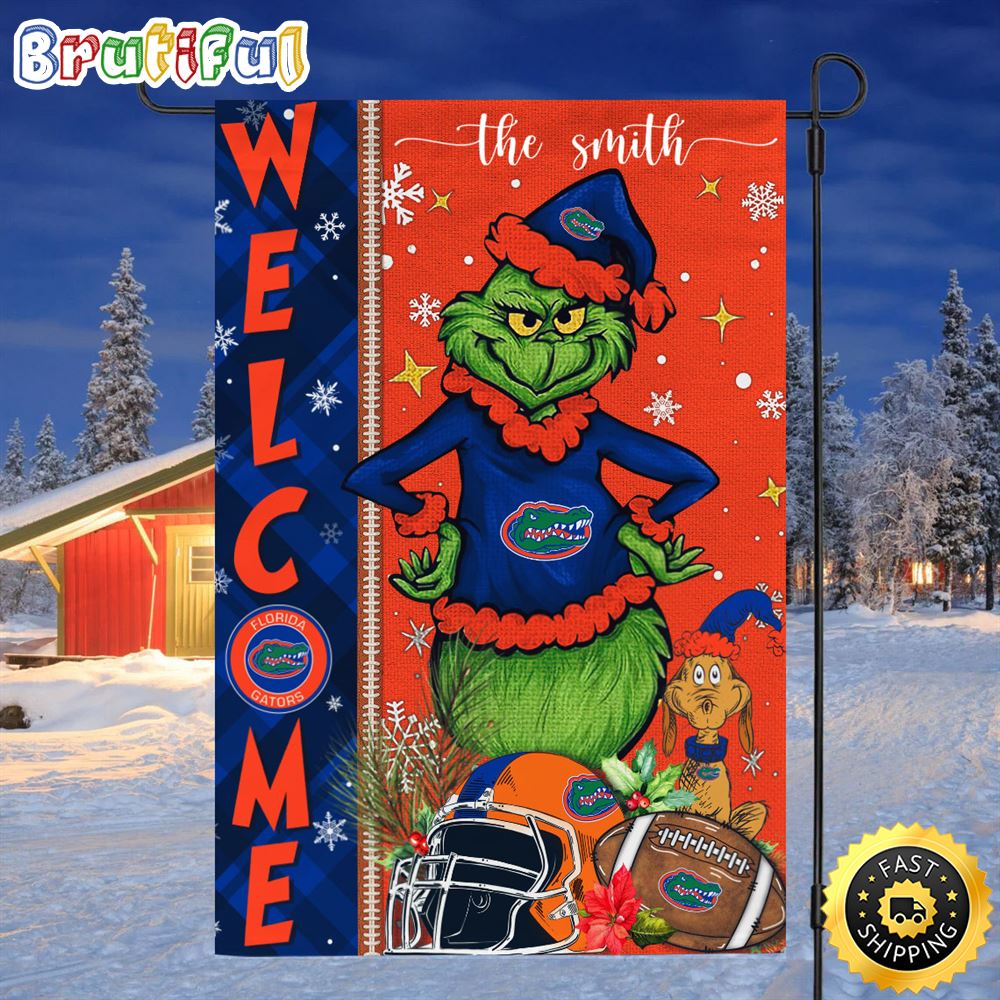 Customize NCAA Florida Gators Garden Flag Grinch Football Christmas Welcome Garden Flag