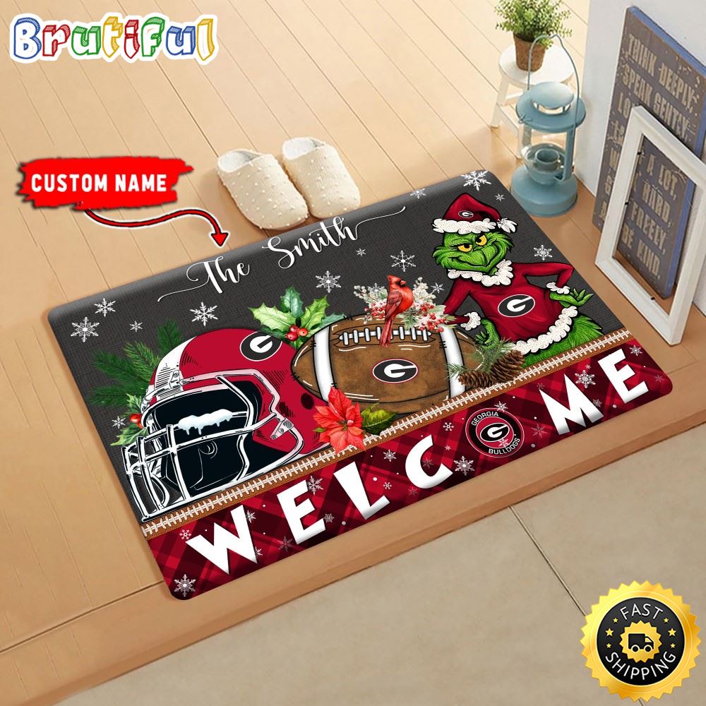 NCAA Georgia Bulldogs Doormat Grinch Christmas Welcome Custom Name Football Doormat