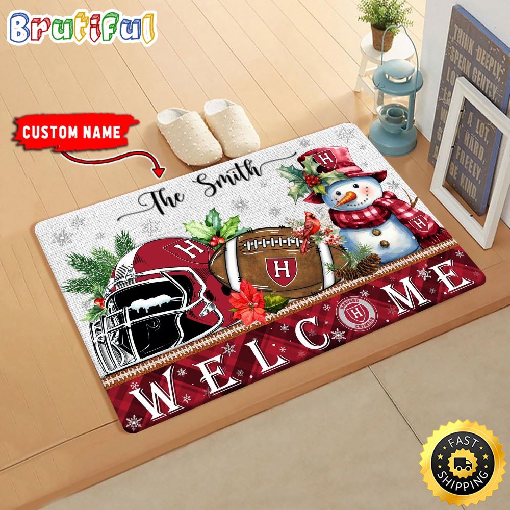 NCAA Harvard Crimson Doormat Welcome Christmas Custom Name Football Doormat