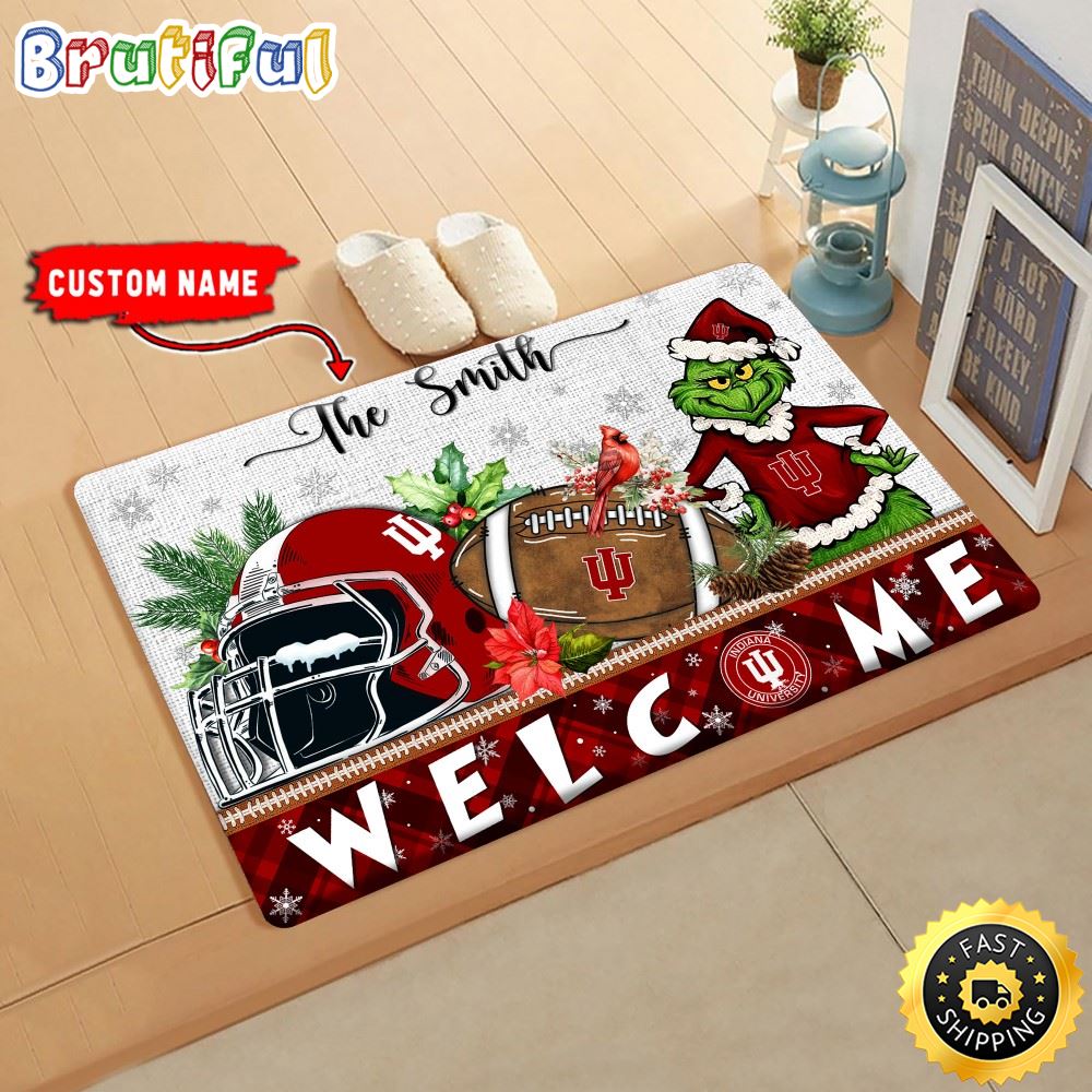 NCAA Indiana Hoosiers Doormat Grinch Christmas Welcome Custom Name Football Doormat