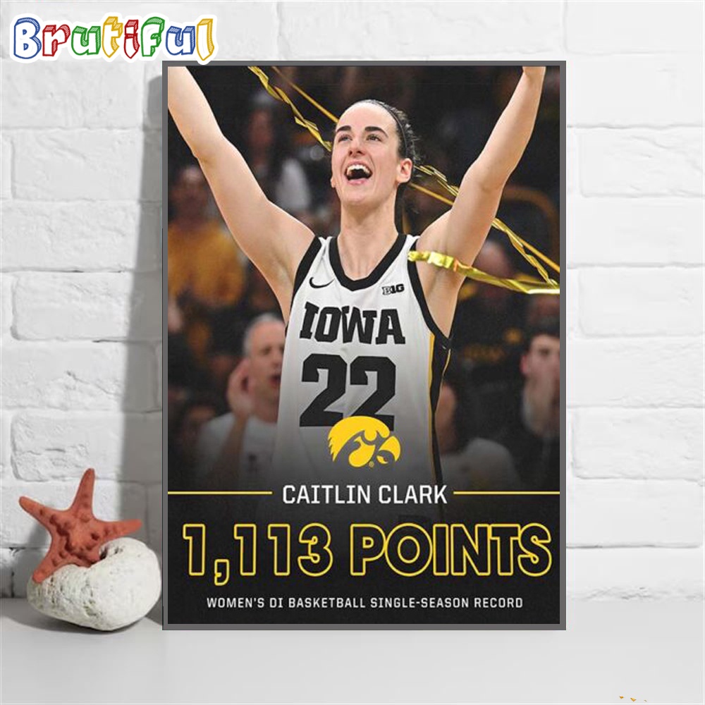 Iowa Hawkeyes Caitlin Clark 1113 Points Womens DI Basketball Single Season Record Wall Art Poster Canvas
