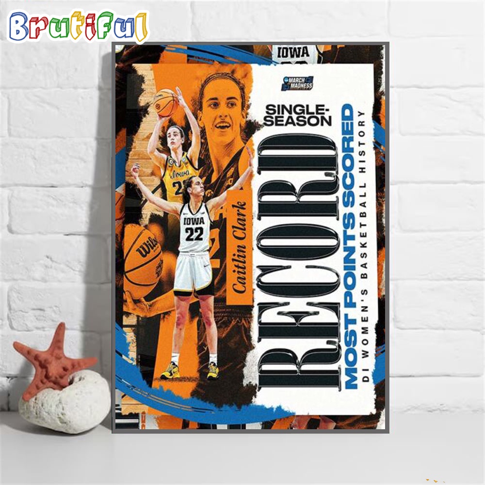 Iowa Hawkeyes Caitlin Clark Sets The Single Season Record For Most Points Scored In DI Womens Basketball History Poster Canvas