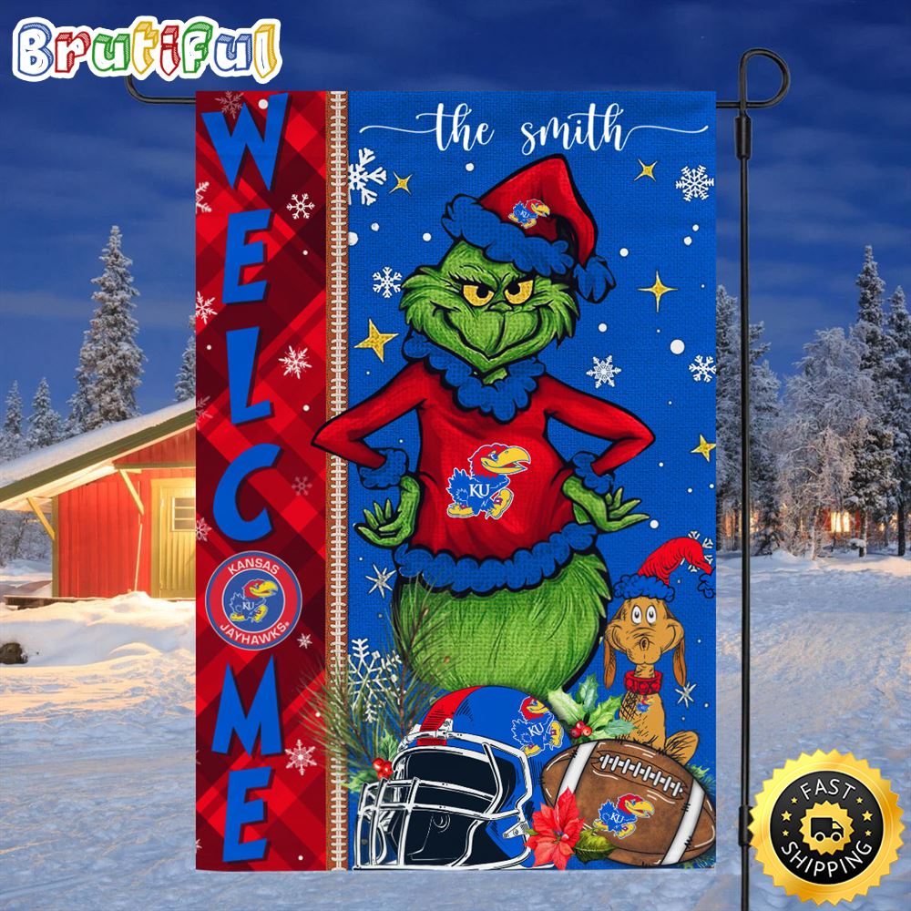 Customize NCAA Kansas Jayhawks Garden Flag Grinch Football Christmas Welcome Garden Flag