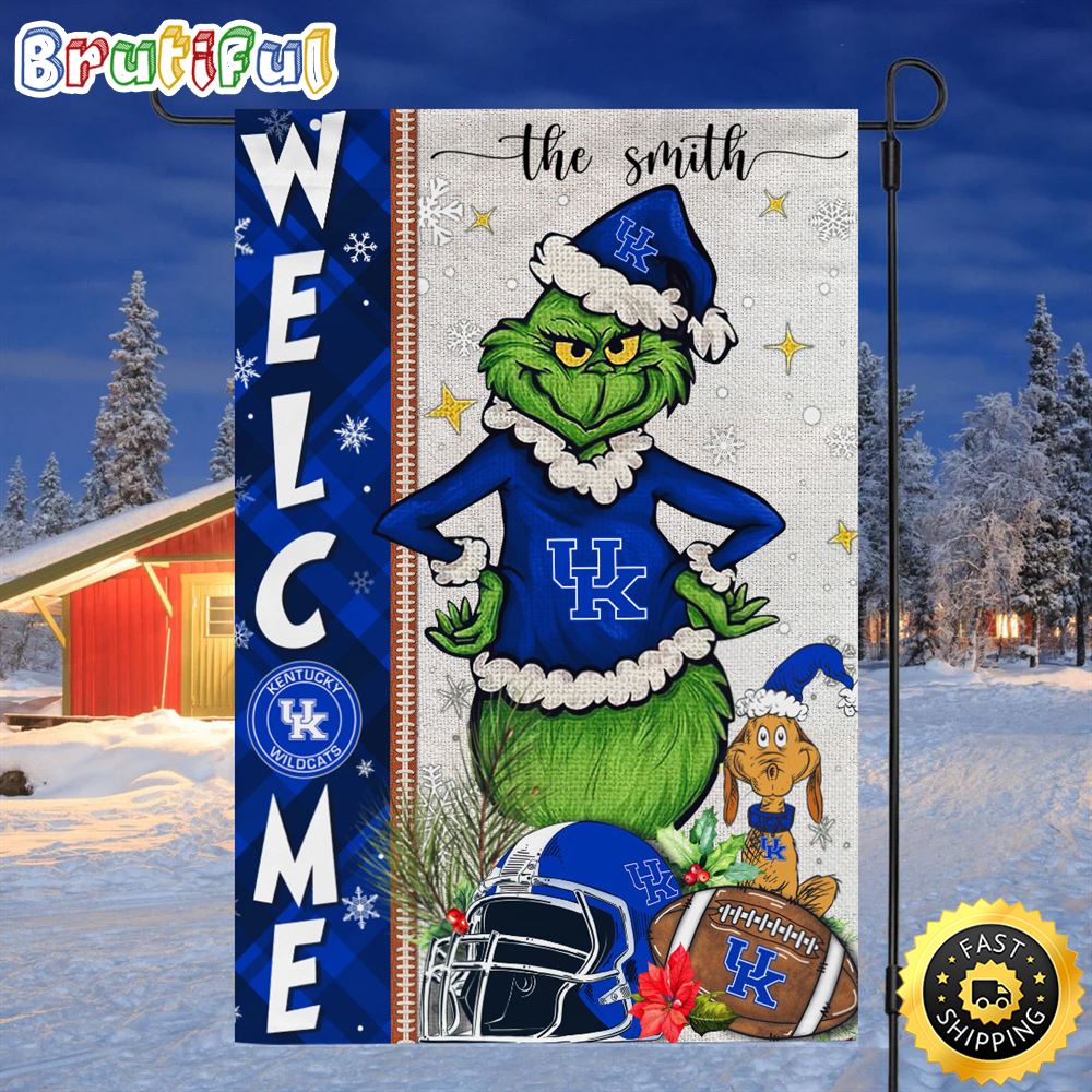 Customize NCAA Kentucky Wildcats Garden Flag Grinch Football Christmas Welcome Garden Flag