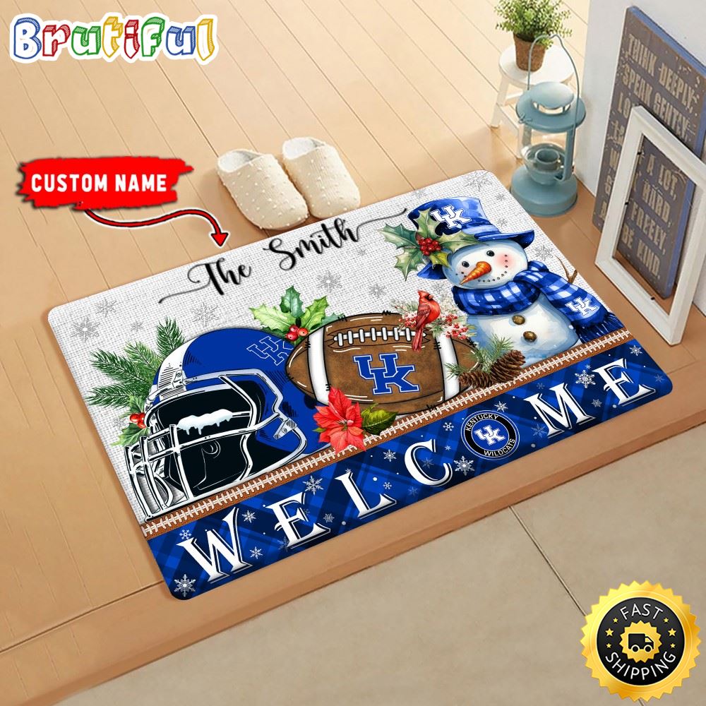NCAA Kentucky Wildcats Doormat Welcome Christmas Custom Name Football Doormat
