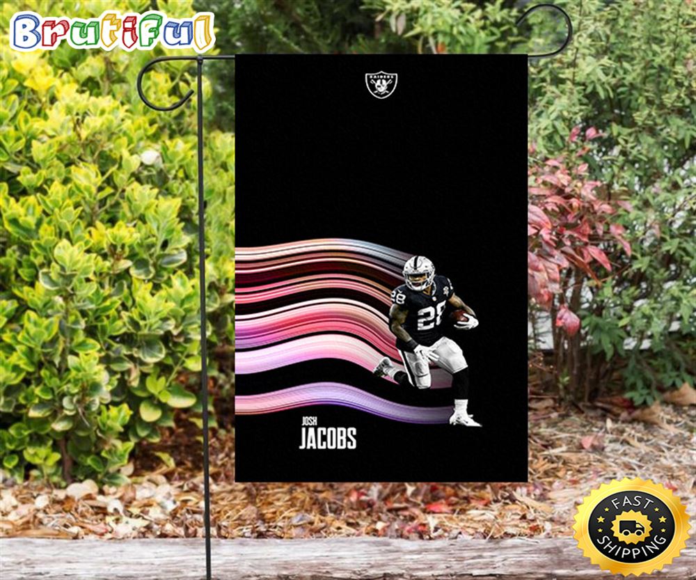 Nfl Garden Flags Las Vegas Raiders Josh Jacobs 28 v4 Double Sided Printing Garden Flag Raiders Garden Flags