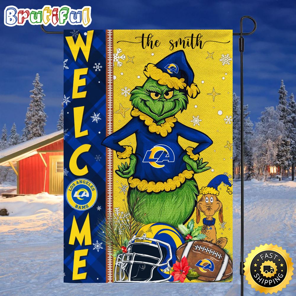 Customize NFL Los Angeles Rams Garden Flag Grinch Football Christmas Welcome Garden Flag