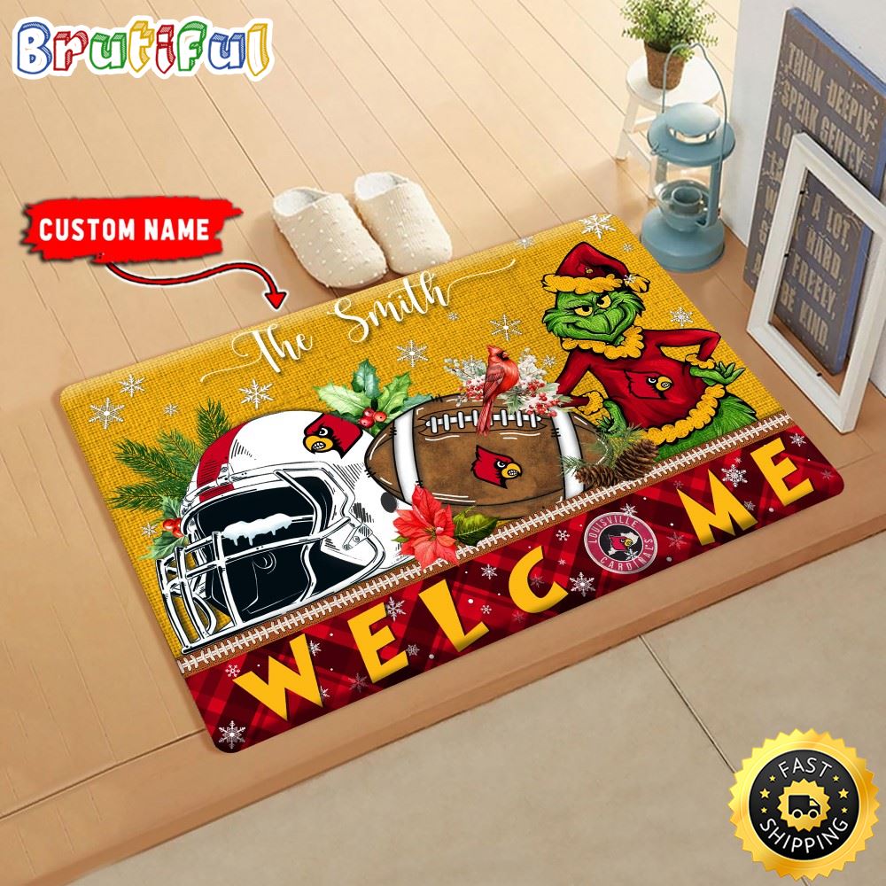 NCAA Louisville Cardinals Doormat Grinch Christmas Welcome Custom Name Football Doormat