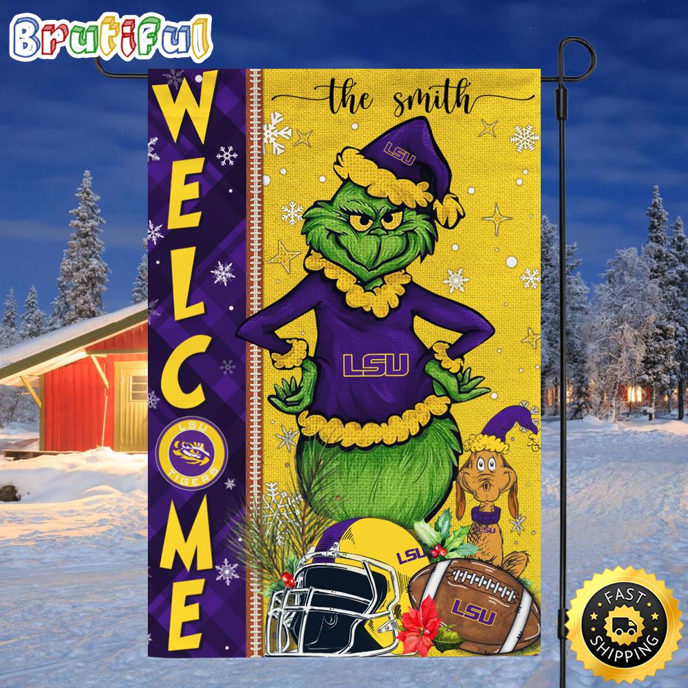 Customize NCAA LSU Tigers Garden Flag Grinch Football Christmas Welcome Garden Flag