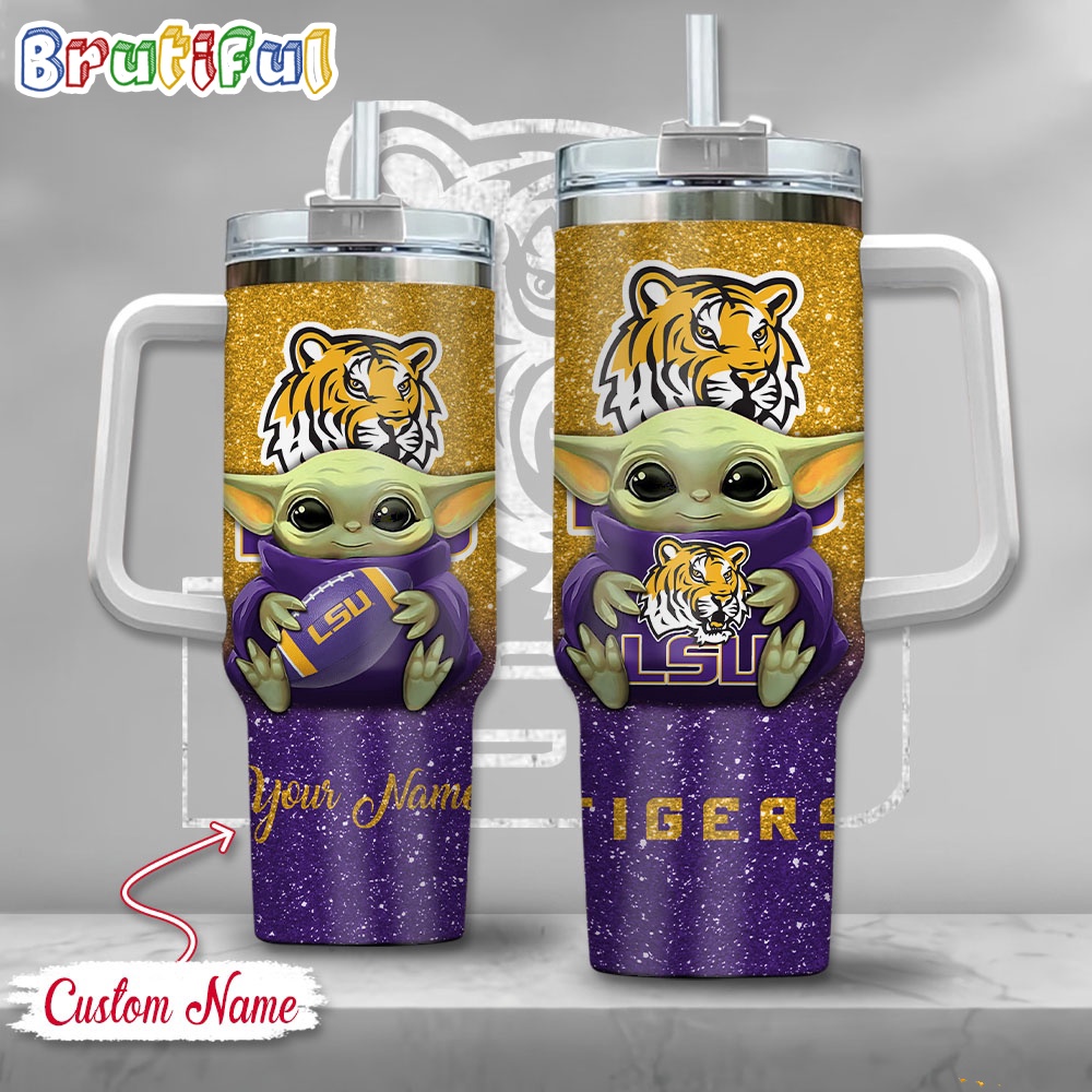 NCAA LSU Tigers Tumbler Baby Yoda Customzed Handle Cup
