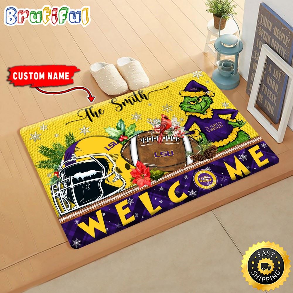 NCAA LSU Tigers Doormat Grinch Christmas Welcome Custom Name Football Doormat