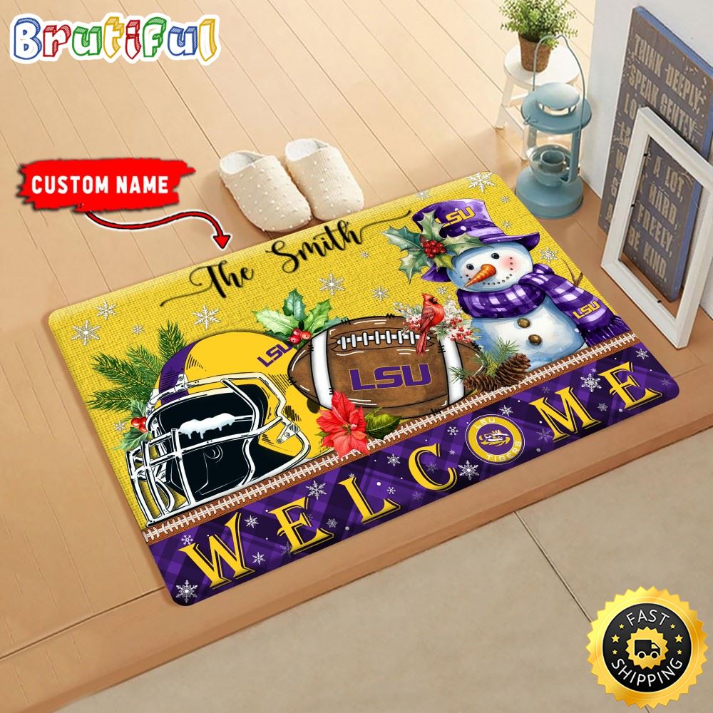 NCAA LSU Tigers Doormat Welcome Christmas Custom Name Football Doormat