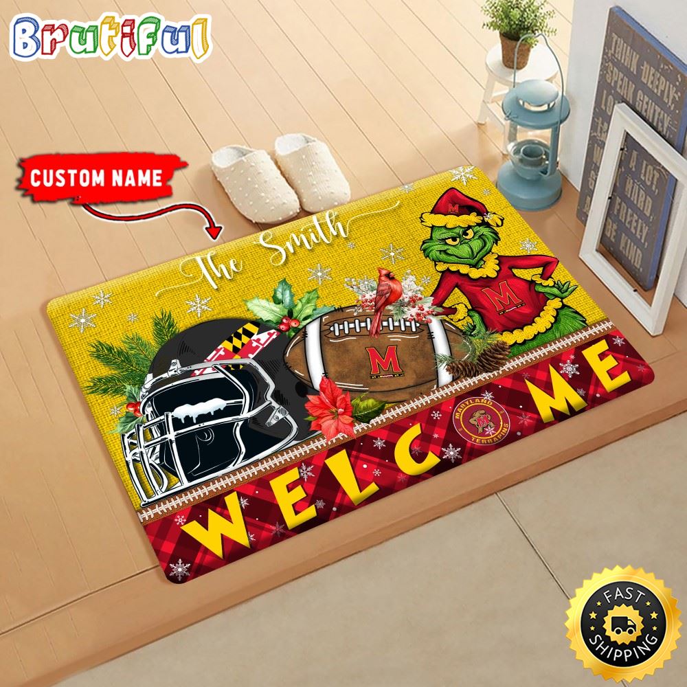 NCAA Maryland Terrapins Doormat Grinch Christmas Welcome Custom Name Football Doormat
