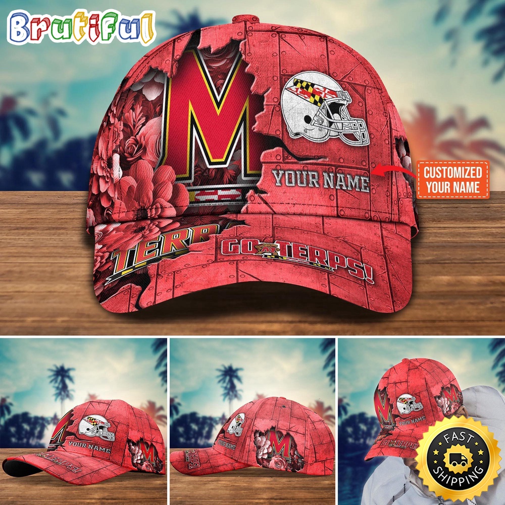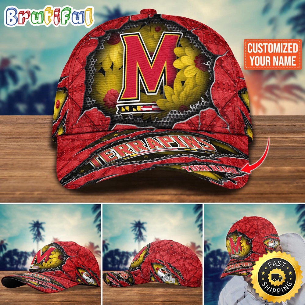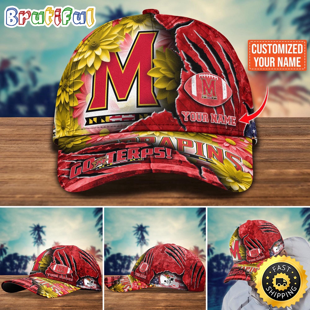 NCAA Maryland Terrapins Baseball Cap Flag Flower Custom Name Cap