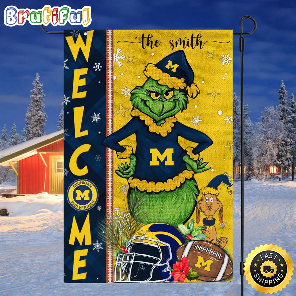 Customize NCAA Michigan Wolverines Garden Flag Grinch Football Christmas Welcome Garden Flag
