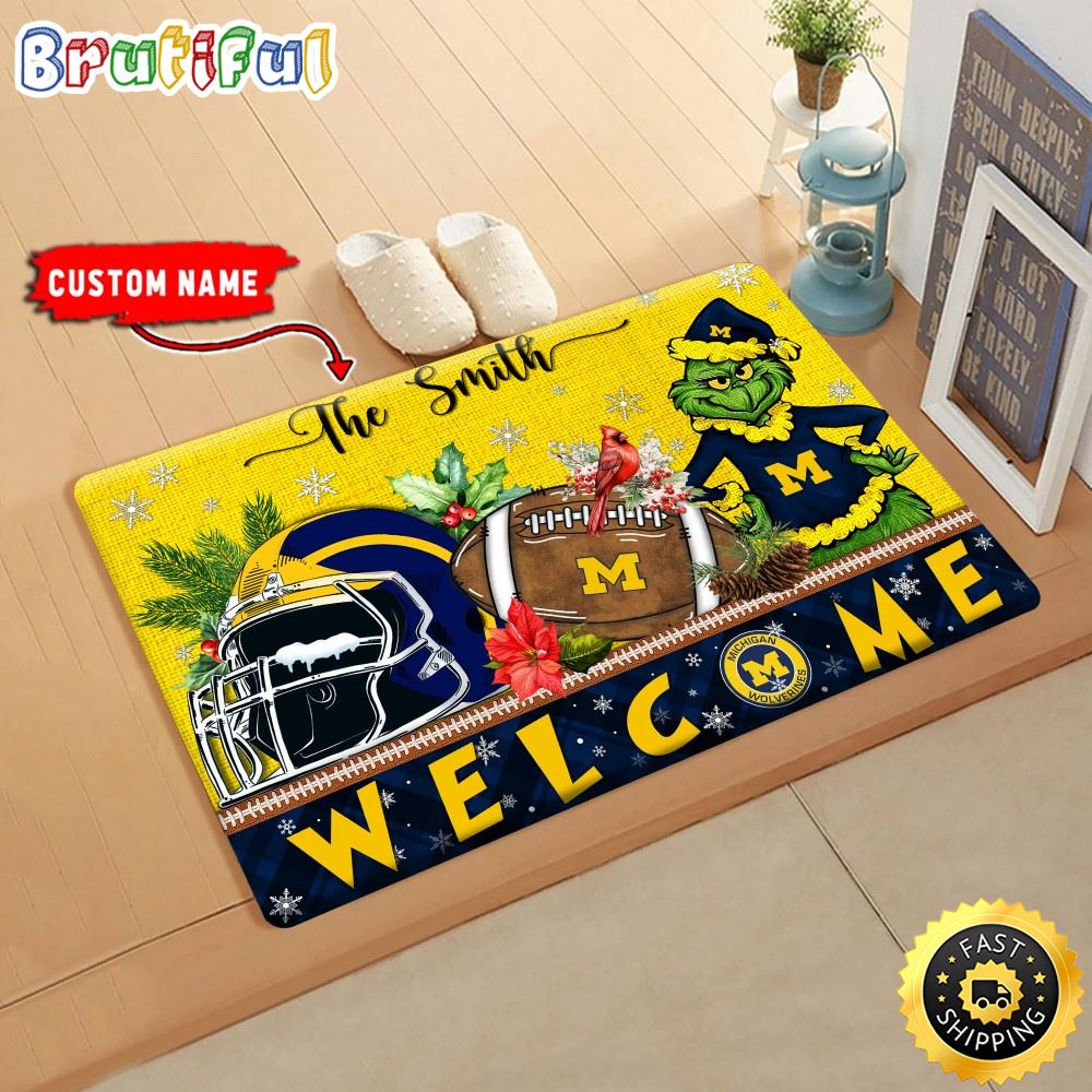 NCAA Michigan Wolverines Doormat Grinch Christmas Welcome Custom Name Football Doormat