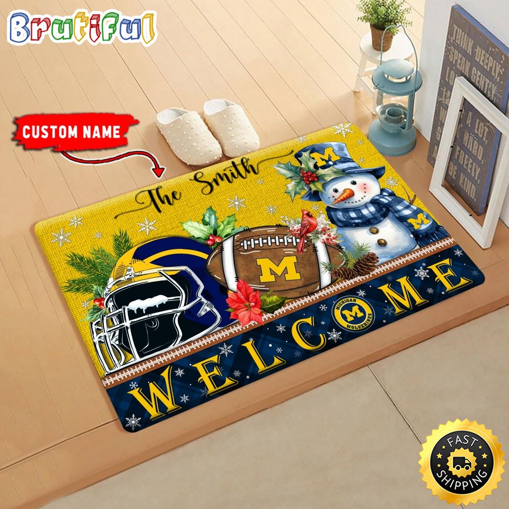 NCAA Michigan Wolverines Doormat Welcome Christmas Custom Name Football Doormat