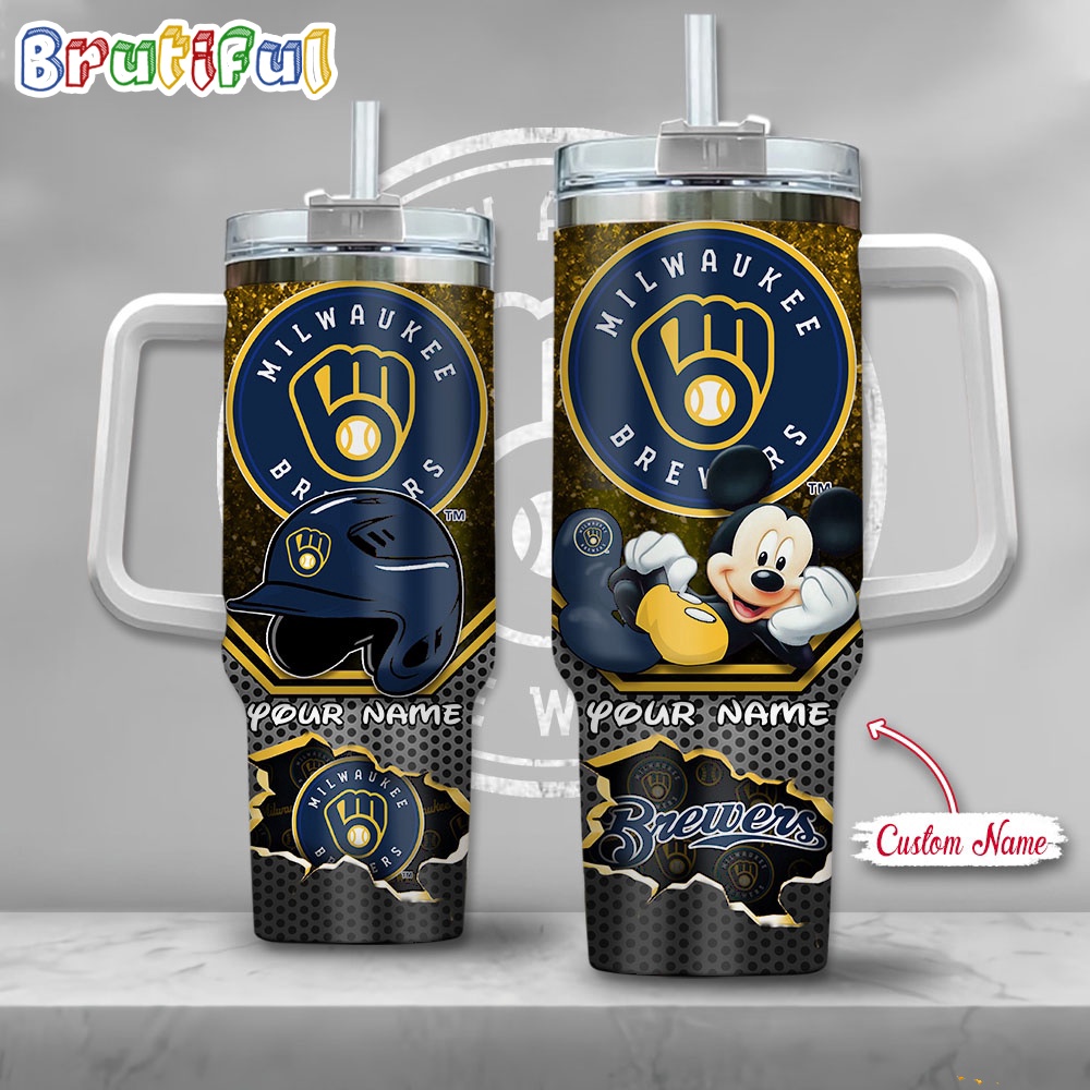 MLB Milwaukee Brewers Tumbler Mickey Mouse Customzed Handle Cup