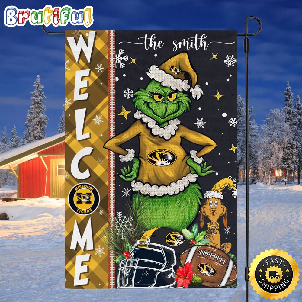 Customize NCAA Missouri Tigers Garden Flag Grinch Football Christmas Welcome Garden Flag
