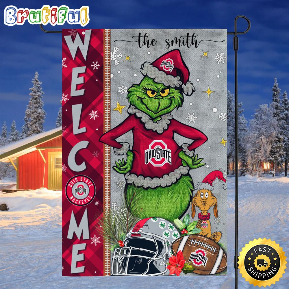 Customize NCAA Ohio State Buckeyes Garden Flag Grinch Football Christmas Welcome Garden Flag