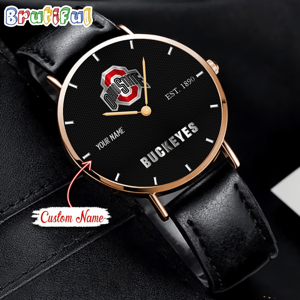 NCAA Ohio State Buckeyes Custom Name Black Stitched Leather Watch